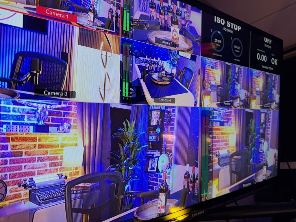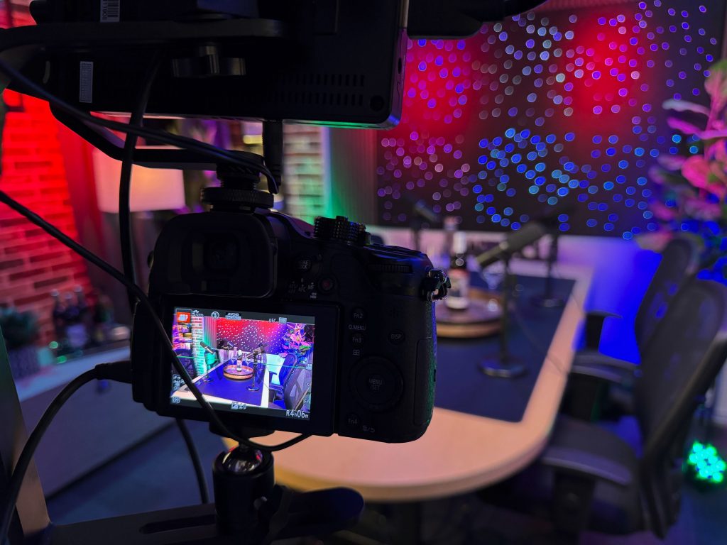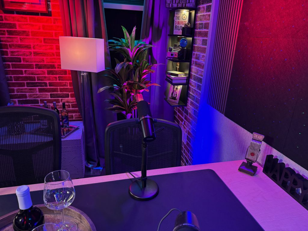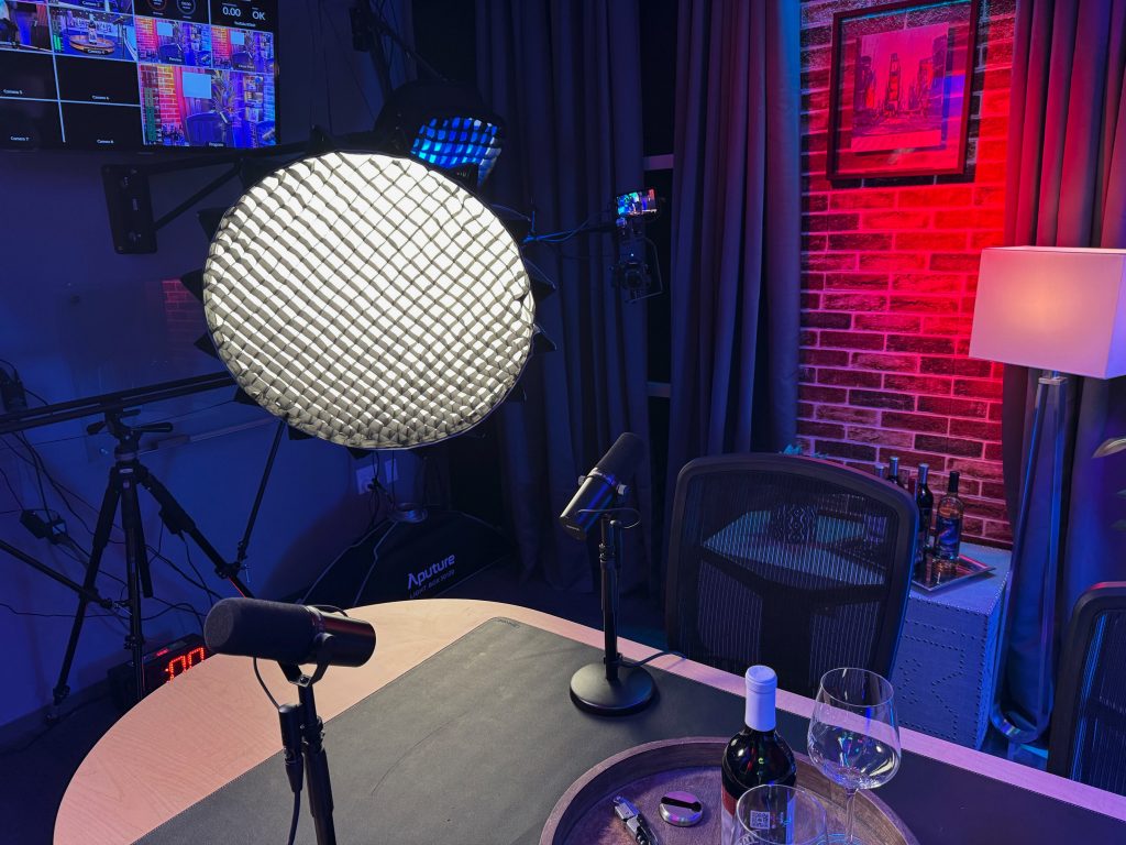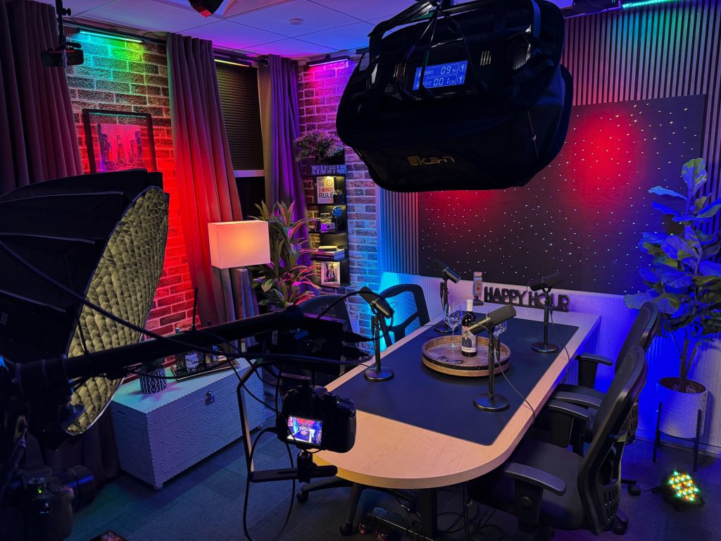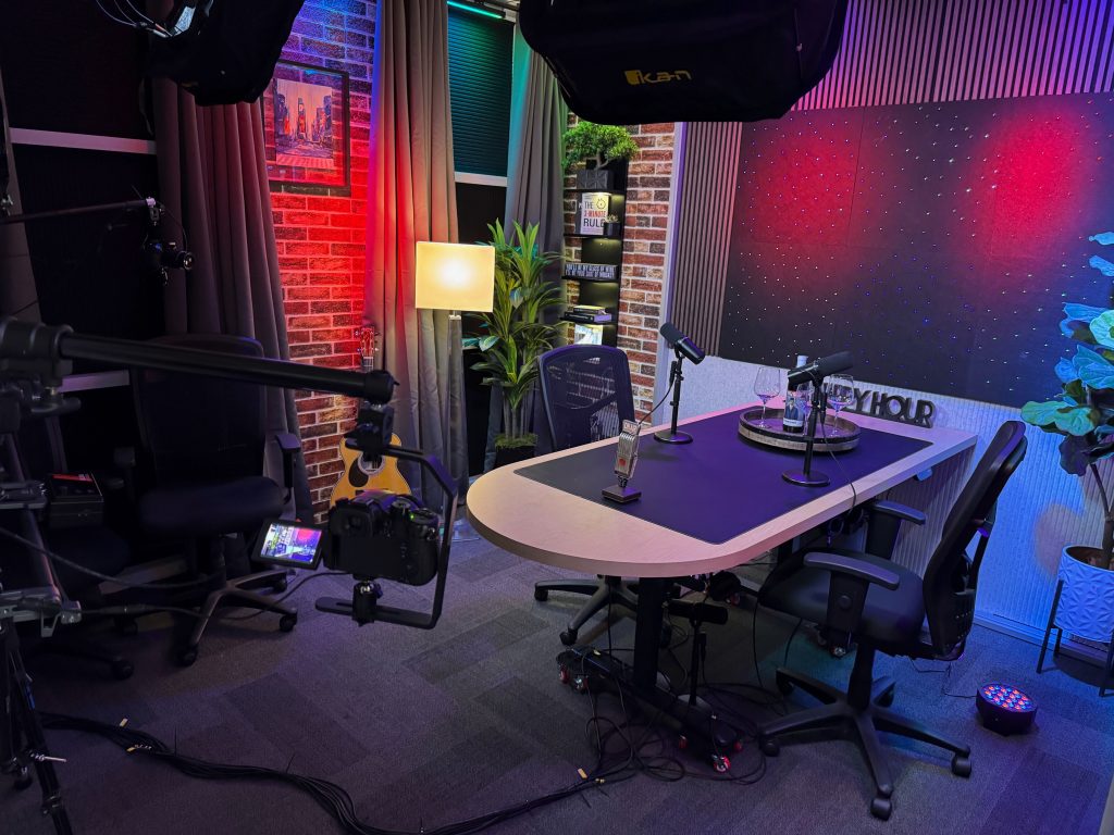 Our flagship recording space, The Cellar Studio, is where collaboration comes to life. With its warm, inviting atmosphere reminiscent of a classic wine cellar, this studio is designed for dynamic group energy. The flexible layout can accommodate a roundtable discussion for up to six people or be reconfigured for a relaxed couch setup. It’s the perfect foundational space to record your multi-person podcast, conduct a group video interview, or produce any content that thrives on interaction and conversation.