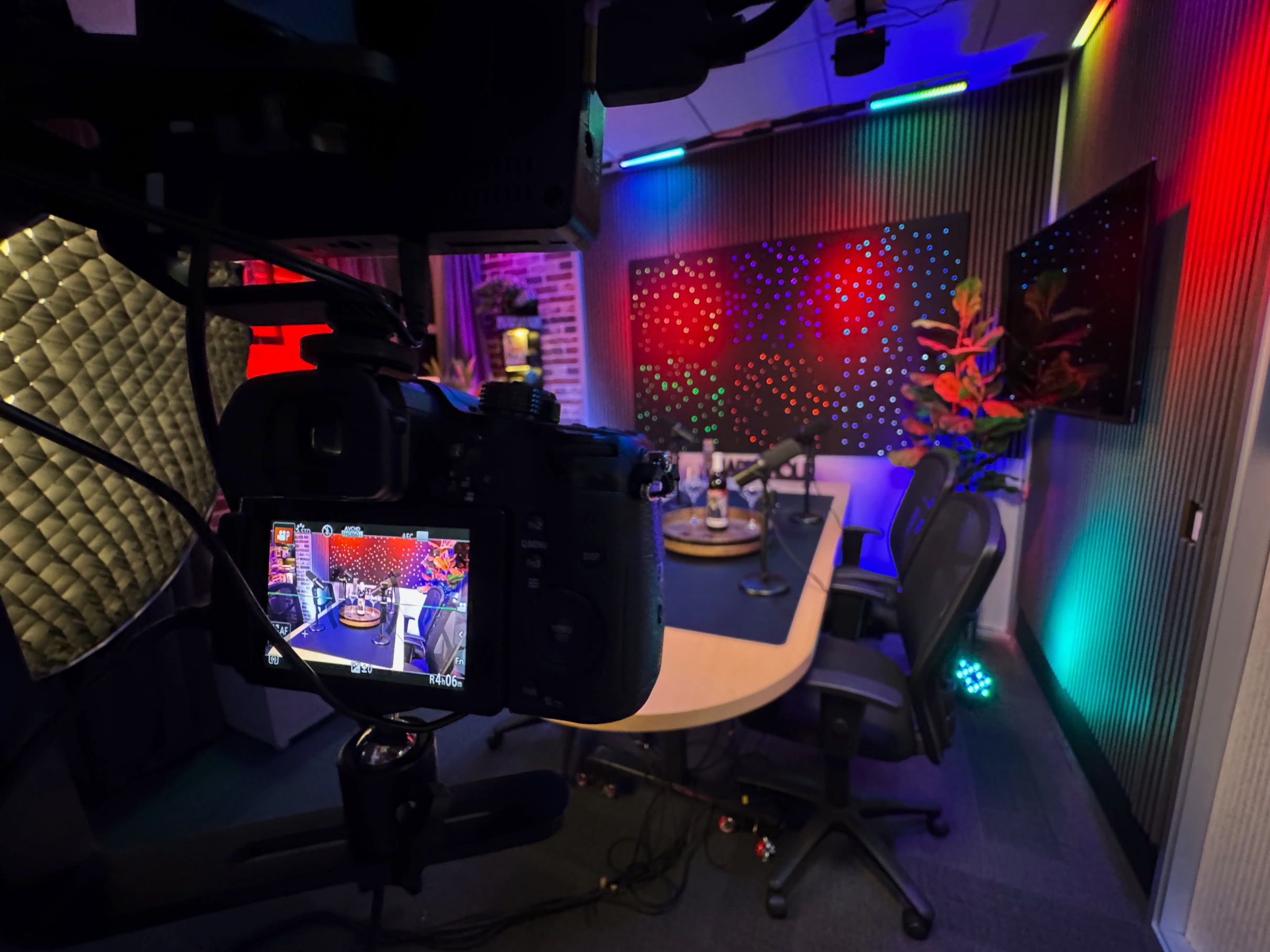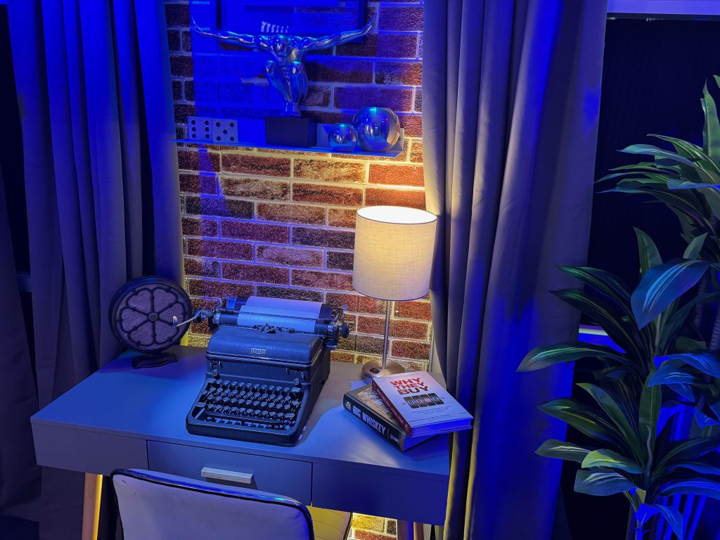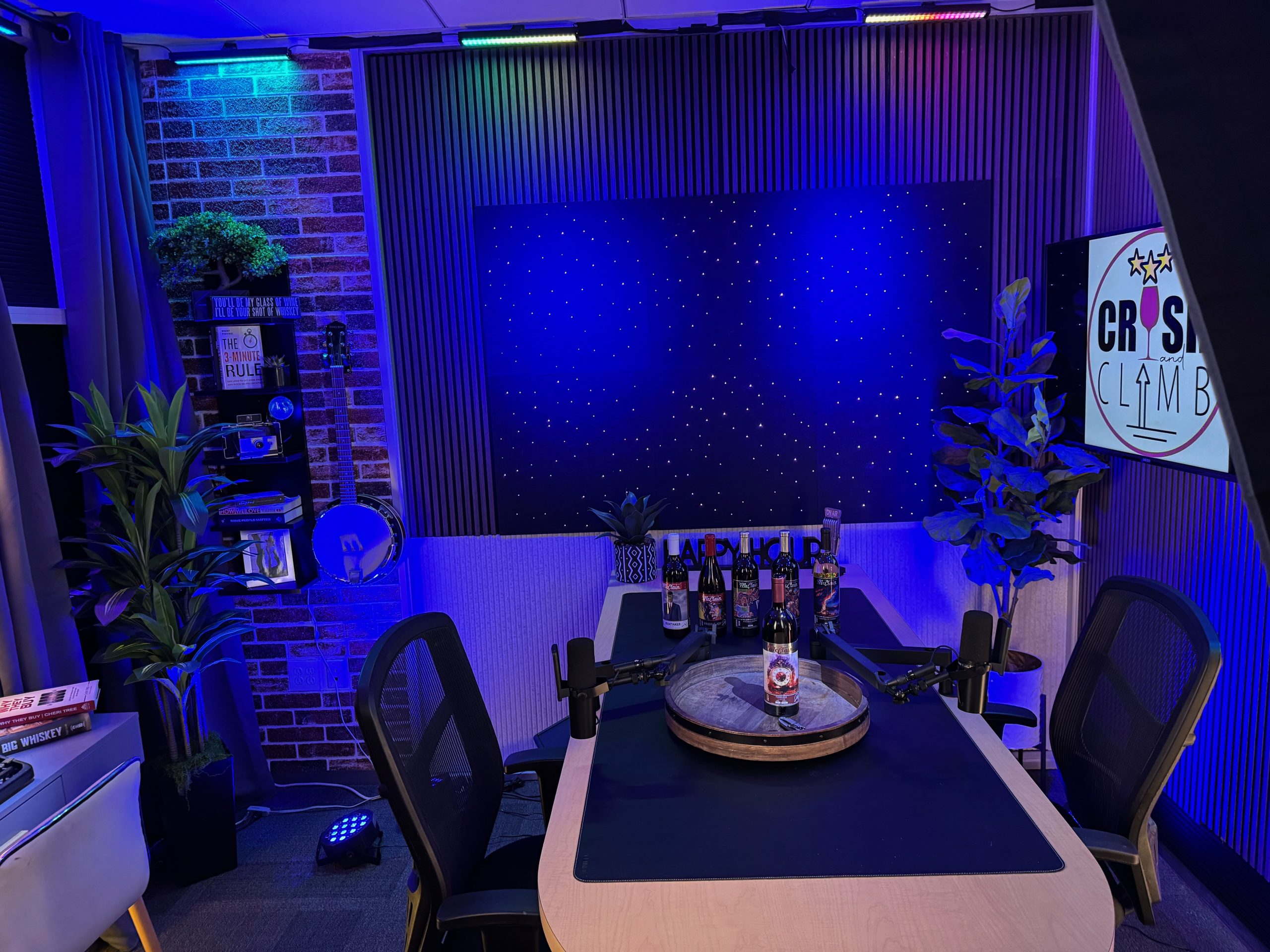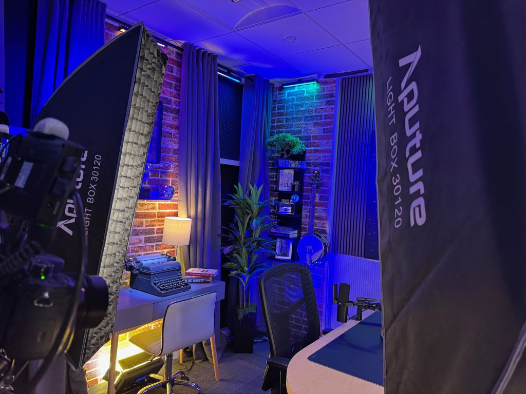 Our flagship recording space, The Cellar Studio, is where collaboration comes to life. With its warm, inviting atmosphere reminiscent of a classic wine cellar, this studio is designed for dynamic group energy. The flexible layout can accommodate a roundtable discussion for up to six people or be reconfigured for a relaxed couch setup. It’s the perfect foundational space to record your multi-person podcast, conduct a group video interview, or produce any content that thrives on interaction and conversation.